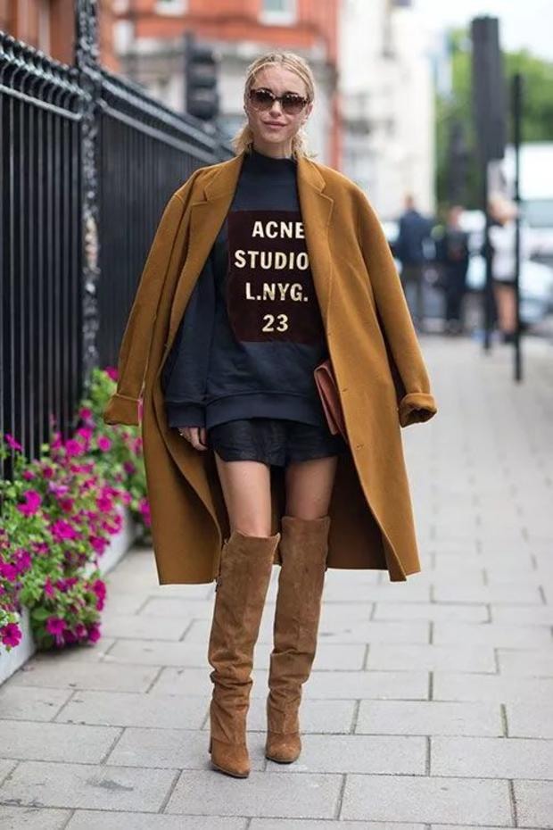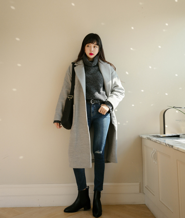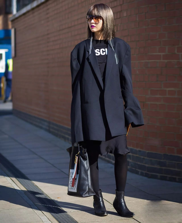当然在选择廓形外套的时候是需要根据自己的身高,对于矮一点的女生尽量选择不要超过小腿肚,高一些的女生选择自然也就可以更广一些。