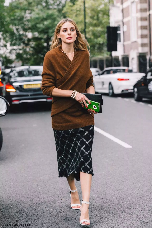 但是在搭配格纹大衣的时候,别再傻傻的单纯的穿一条黑色的紧身裤了,那样太不时尚了。绿色的格纹元素大衣与白色的裙子搭配颜色之间有碰撞,又干净又有色彩,穿起来很高级。又或者是选择直筒牛仔裤,修身掩盖了腿部的缺陷。