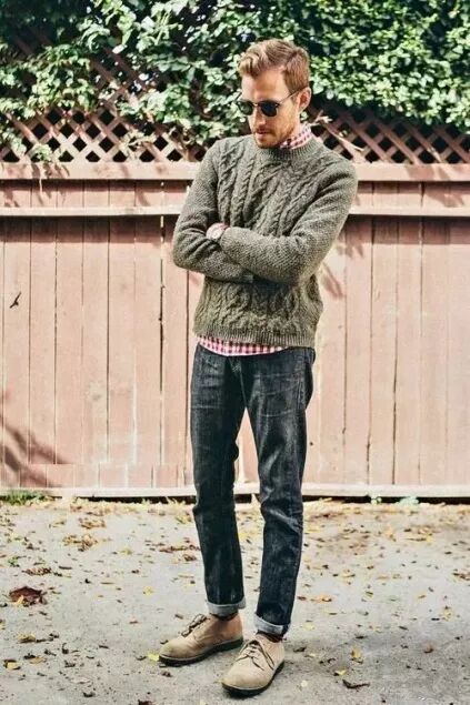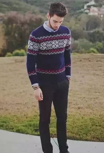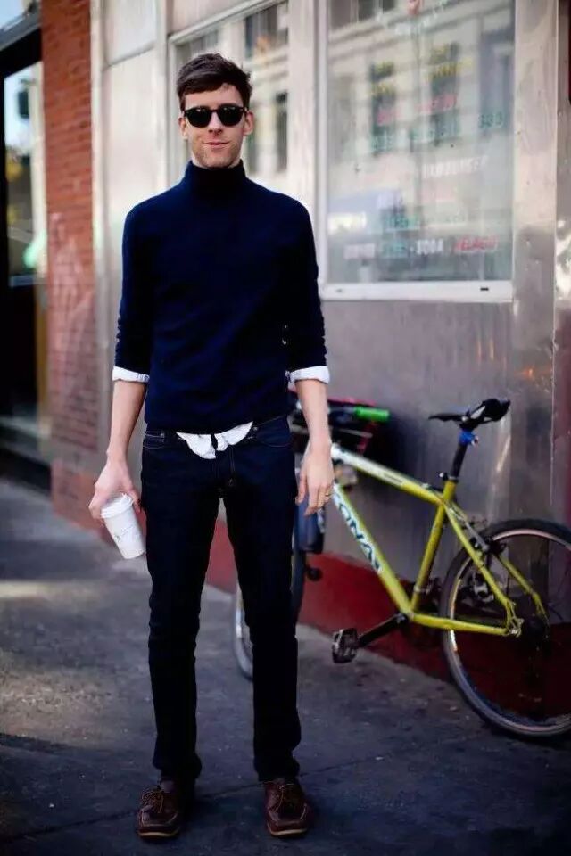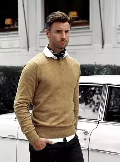 男生一般适合衬衫配上深色的高领毛衣,显得绅士十足、不缺商务范儿。若是衬衫不系扣子,或开到第3、4颗,时髦度up up!