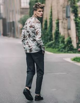但想要穿得出彩,不妨试一下拼接款、格纹、迷彩等其他款式或图案。不过切记,搭配的裤子一定要简单。