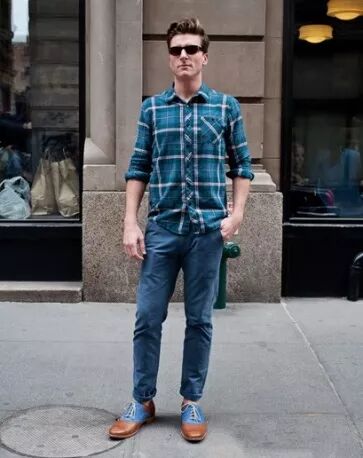 除了纯色衬衫,格子衬衫自带潮流感,当外套是不少潮男的选择。