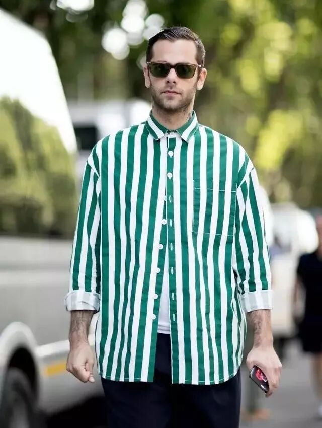 条纹衬衫也一直深受型男们的追捧。条纹衬衫的百搭性体现在,不同颜色、方向、粗细与密度的条纹所呈现出来的感觉不同。