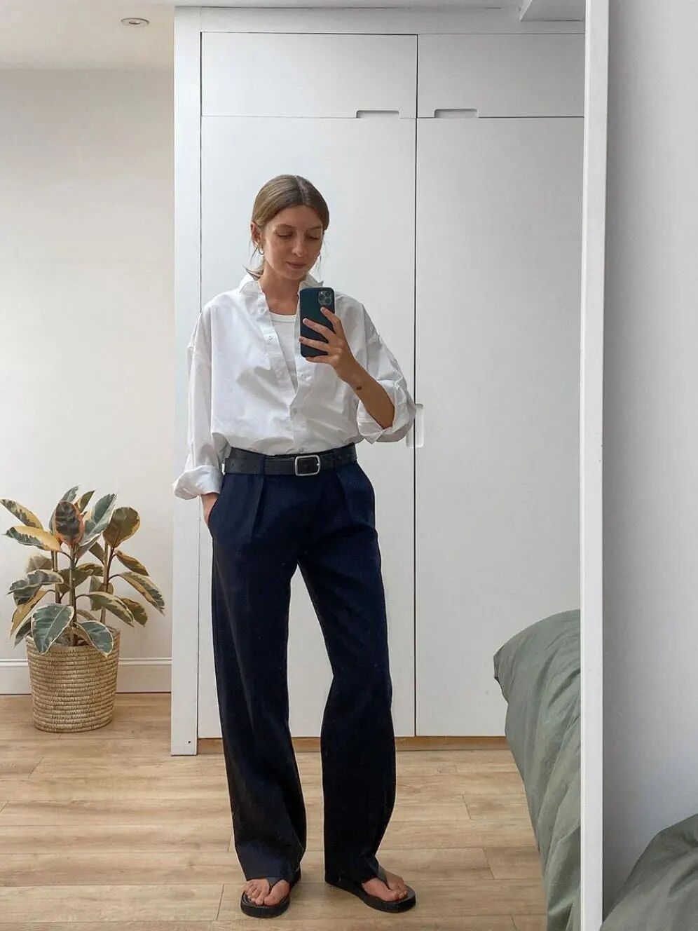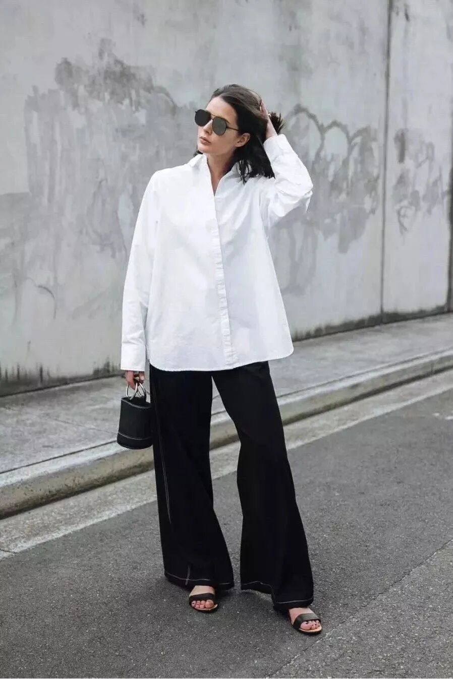 而且白衬衫也可以让你的穿搭风格随意切换,搭配西装裤非常的职业,搭配牛仔单品又会让你减龄且休闲。