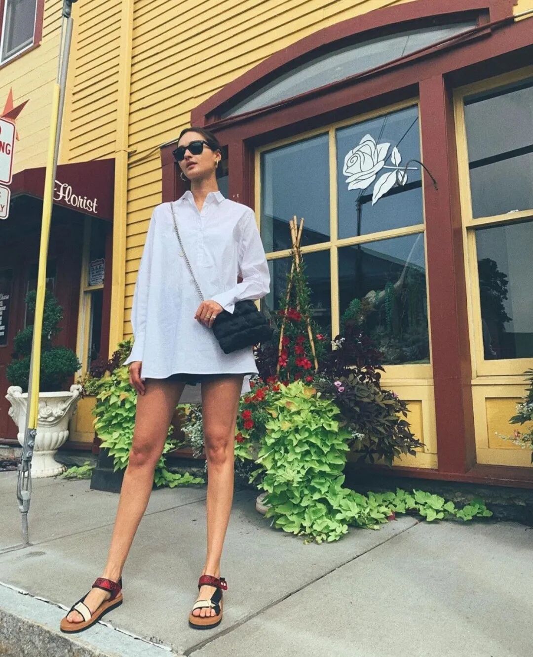 当然,衬衫还可以当做外套来穿!毕竟早秋季节,如果单独穿背心或者偏薄的短袖出门,可能无法抵抗秋日的凉气,那么直接在它们外面加一件衬衫,就可以轻松解决问题。