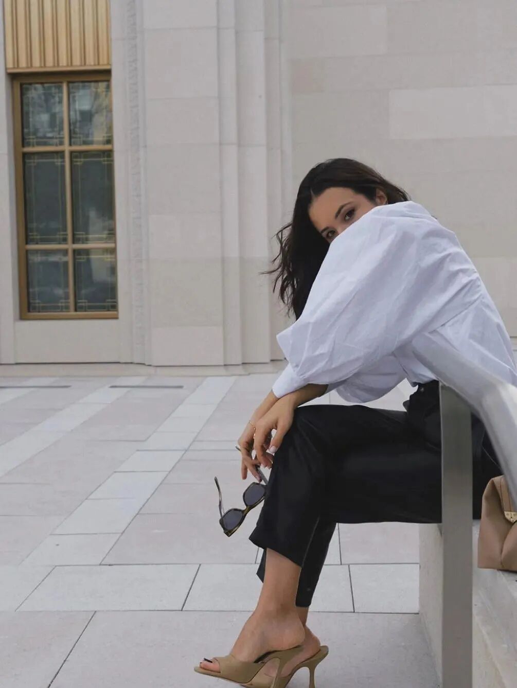 纯色衬衫必然是最安全的基础款,而基础中的基础大概就是白衬衫了。即使时尚不断轮回,但是白衬衫却一直在,不论突然爆火了多少单品,它都有自己的地位。