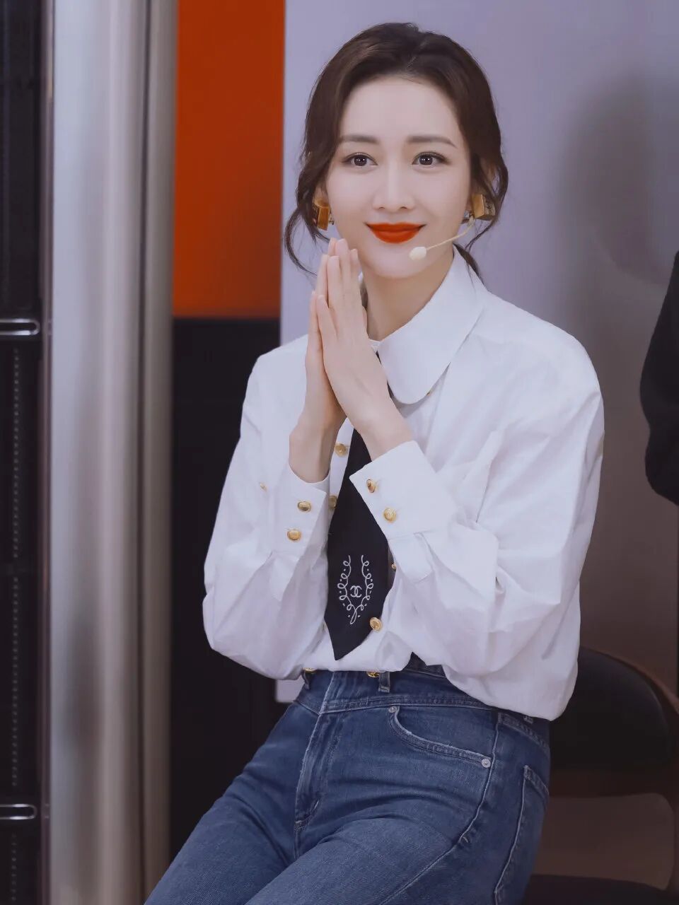 秦岚这身白衬衫+奶油色针织背心的组合就非常适合早秋季节,既能起到保暖效果,同时又提升了穿搭的层次感,时尚值瞬间拉满。