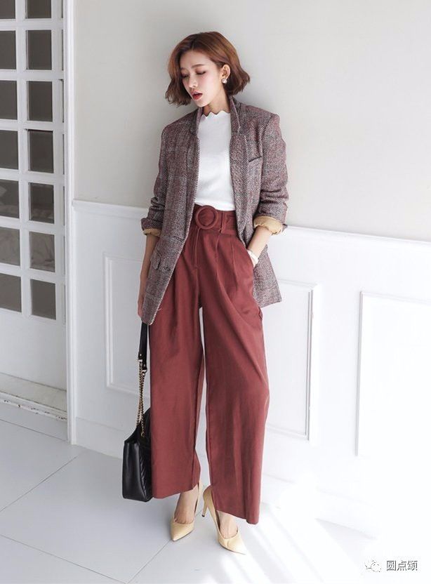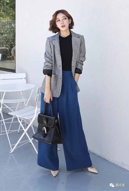 西装外套搭配阔腿裤,说阔腿裤是今年的最火单品也不过分,一年四季几乎季季瞩目,出镜率极高!