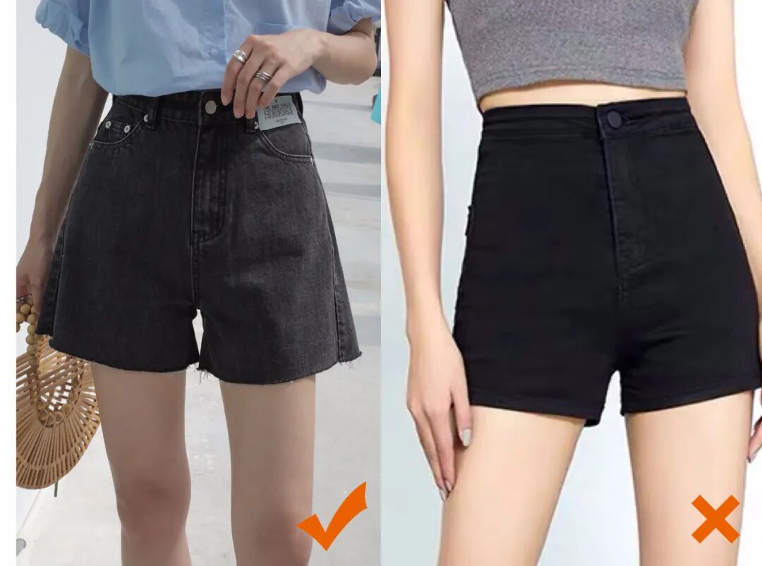 包括我们经常穿的短裤,尽量选择裤腿呈A字版型的,会比直筒裤腿来得更显腿细,剪裁也会更加大方↓