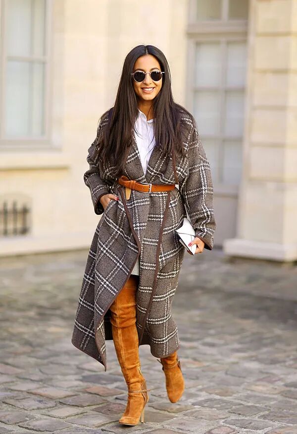 如果你衣柜里现有的衣服本身没有设计腰线的话,也可以找一个腰带(细腰带可以中和中性/休闲类的穿搭、粗腰带中和女性/柔美类的穿搭),凭空制造出一收窄的效果,感觉立马就来了↓