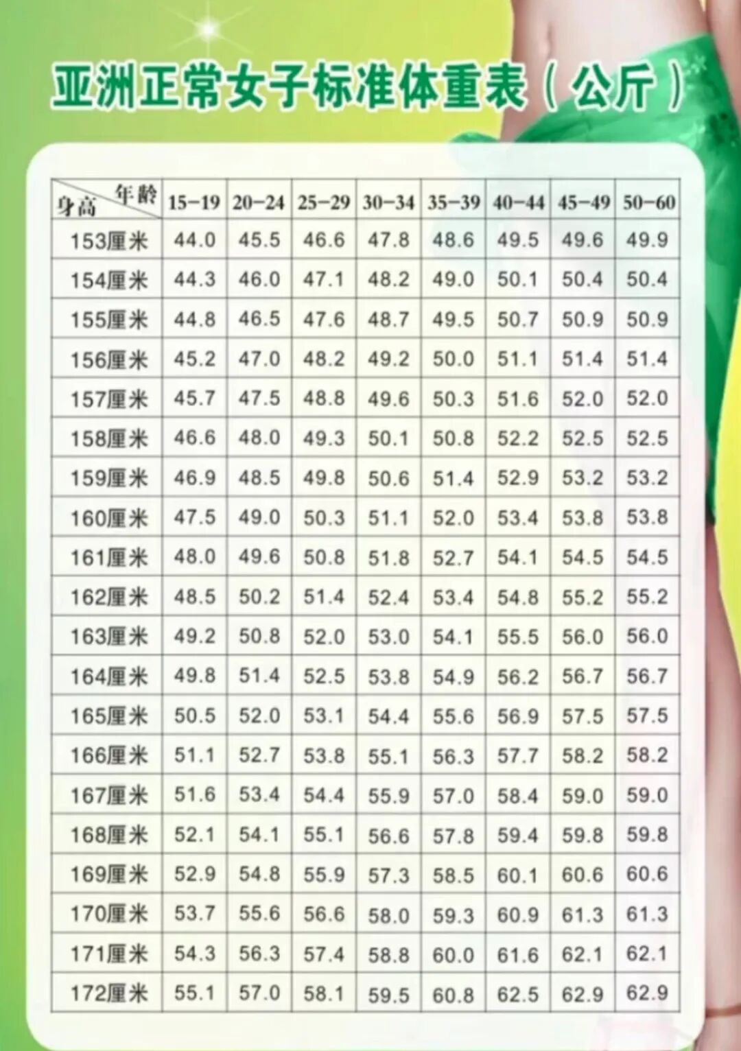 并且,我们日常不会无时无刻跟别人站在一起,更多的时候是单独出现,所以,唯一的标准就是跟自己比。你要看你自己的体型头肩臀比是不是和谐舒服,在你自己的这个身高体型下,是不是偏胖偏瘦。偏胖的话,一定就是大骨架;偏瘦的话,一定就是小骨架,给个身高体重表,自己参照一下,就大致明白了↓