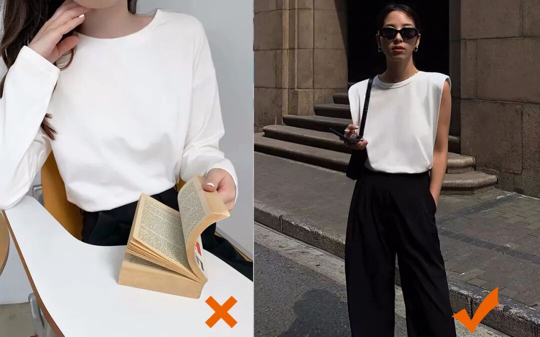 大骨架的人,最好拒绝那种莫代尔棉之类软踏踏的材质。小骨架的人穿这类衣服看起来有种撑不起来的感觉,会显得温柔纤细。但是大骨架的人穿上贴着肩背,会更加显得虎背熊腰,毫无质感↓