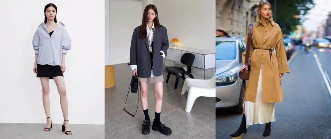 同理,如果你今天穿了衬衫和牛仔裤,但是又不想显得那么休闲随意,那可以把鞋子换成细跟凉鞋,把休闲的落脚点放在了你精致的高跟鞋上,整个人还是挺立的,不会感觉松垮↓