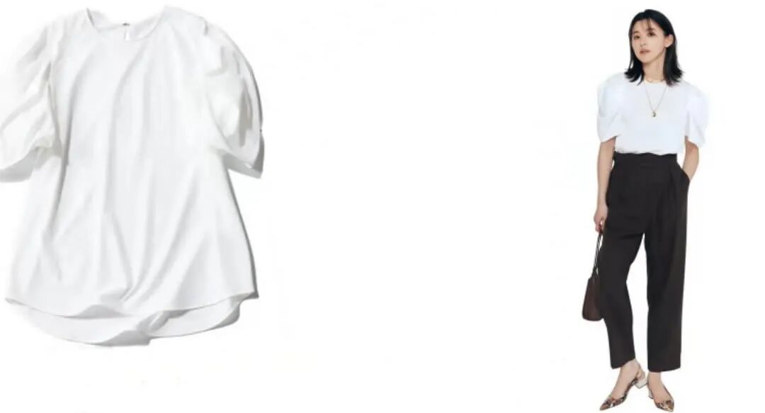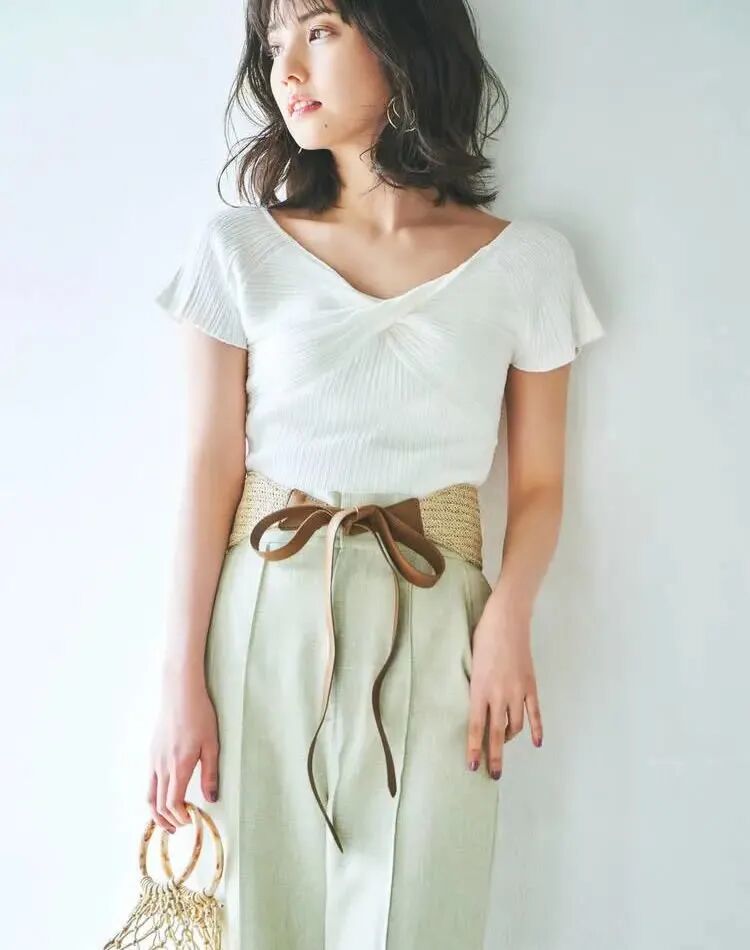 高腰线,是上下装的颜色、款式等的落脚支点。对于显高比例的调节,起着关键作用。将服饰的亮点提高,让视线聚焦在较高位置,自然会显高。
