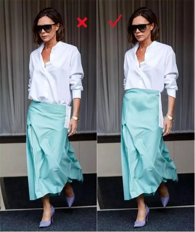 可是上半身长的人穿,从前面看好像看不出,但是从背后看的话,则成为明显的视觉灾难:臀部下移的即视感特别明显。再宽松的直筒裙,总能看出臀部的位置。