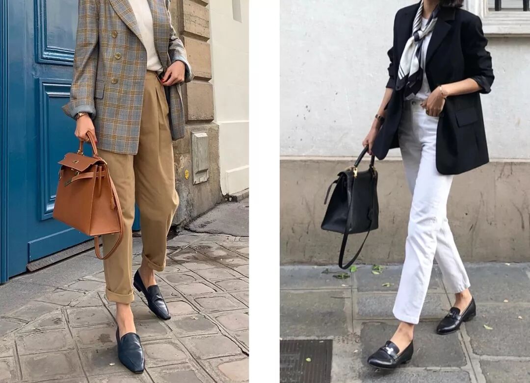 比起衣服,鞋子更能决定整体风格。她穿西装的时候最爱搭配乐福鞋,下装无论是裤装还是裙装,整体风格都很利落。▼