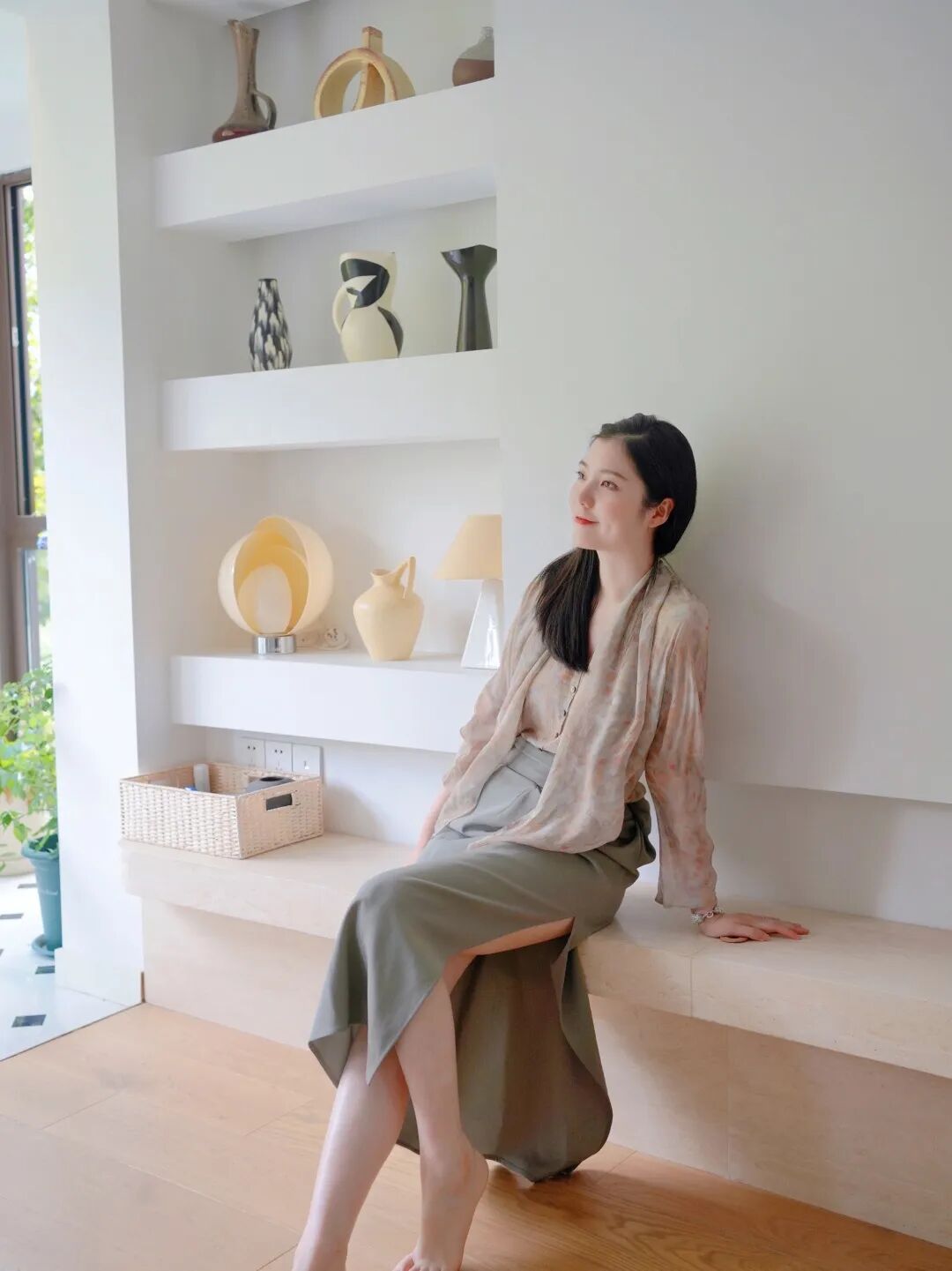 并不束腰的宽松版型,让人看上去更加的轻盈和自由,无拘无束。雪纺这类面料,让其舒适程度进一步增加,也更添了一分禅意~