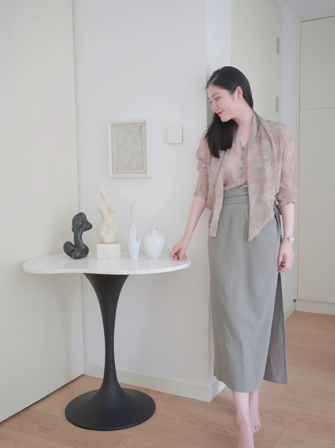 我不知道大家有没有过和我一样的困扰,就是有时候觉得一条裙子不错,但又找不到适合搭配的上衣。不得不说解决搭配衣服的烦恼,最简单的办法是穿套装啦~