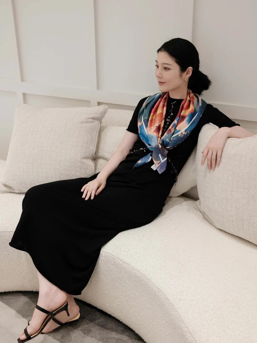 松软的雪纺衫相当具有迷惑性,和身体之间松松的余量就是显瘦的关键。其实连衣裙和雪纺的材质非常搭配,均是垂垂的大块面纯色相辅相成,尤其贴合东方神韵,穿上以后仙气飘飘。