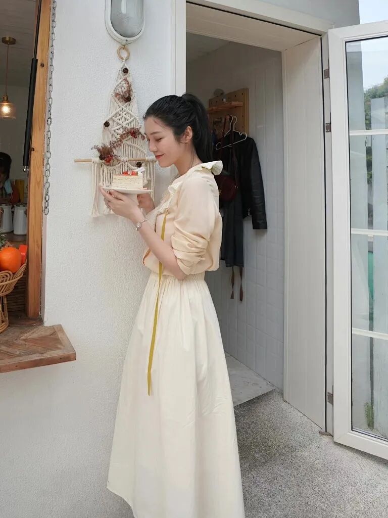 设计简单大方的裙子,总会给人一种自然的美感。这件连衣裙温柔的奶白配色,不论是单穿还是作为内搭都非常好看显气质~