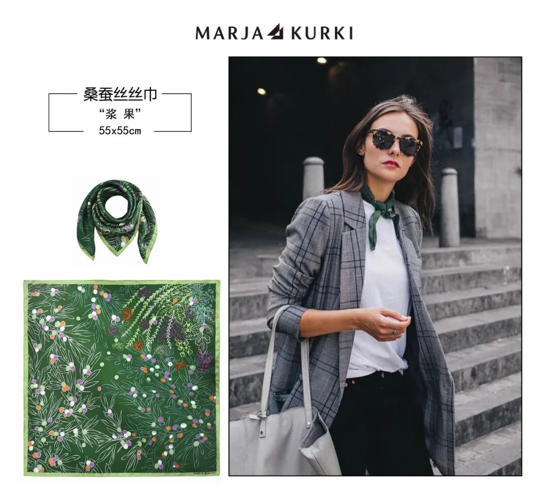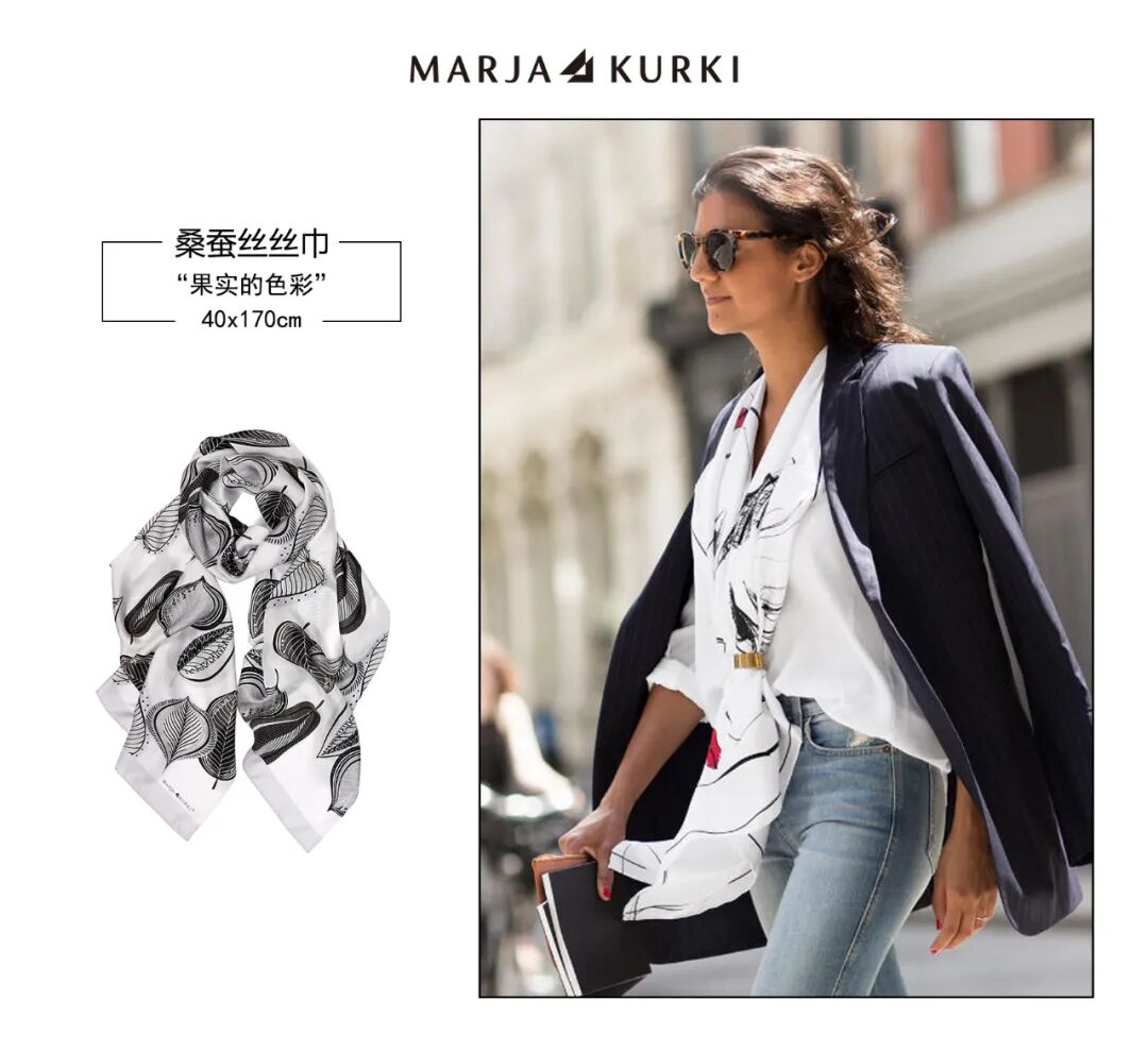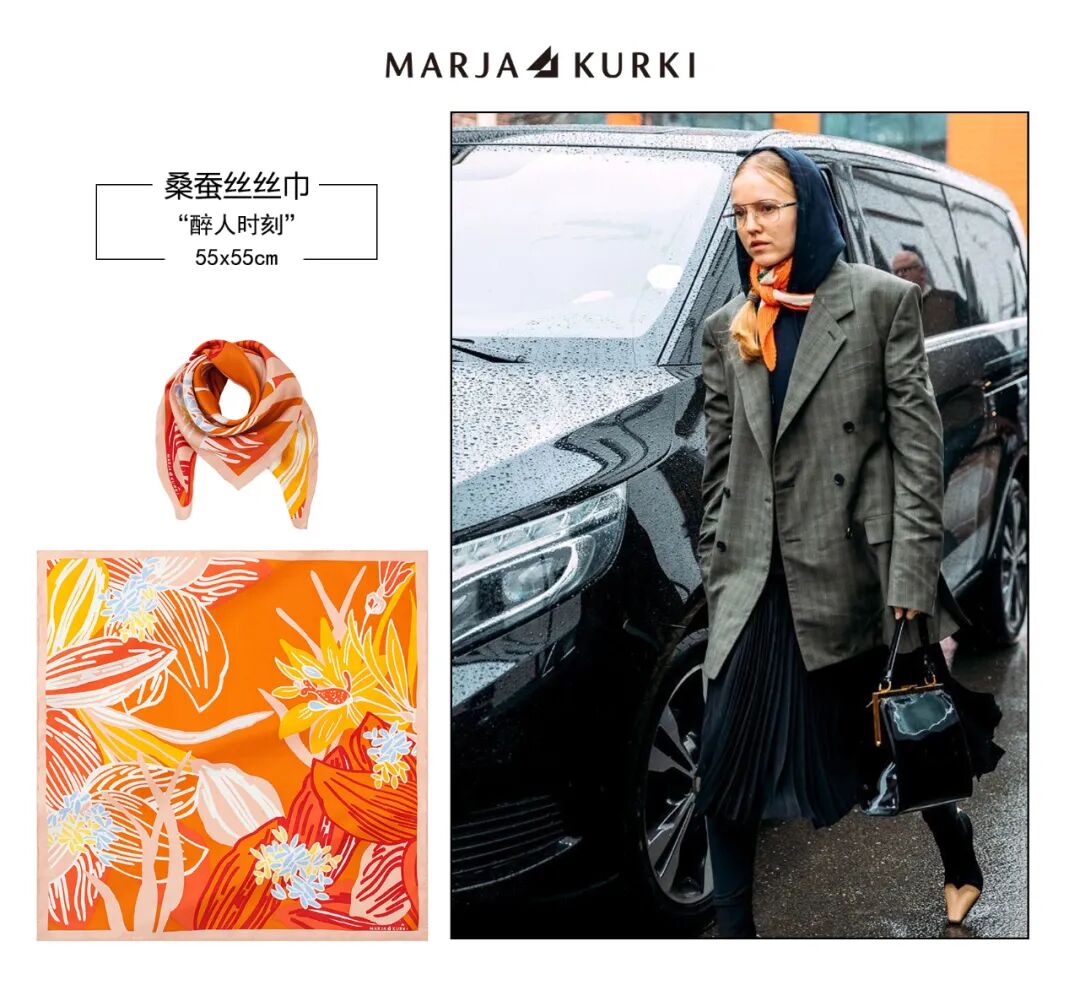 其实,我们在使用丝巾时不需要将它固定为一种配饰,可以发散思维,突破丝巾的配饰功能,你会收到意想不到的效果。