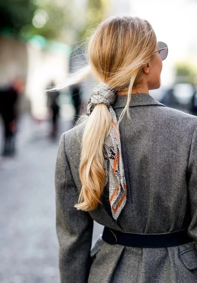 相比于方巾的精致俏皮,长巾更能凸显西装中性风的特质,展现女性英姿飒爽的美,再精致一点的女生可以用丝巾扣固定丝巾尾端,让整体更有型。