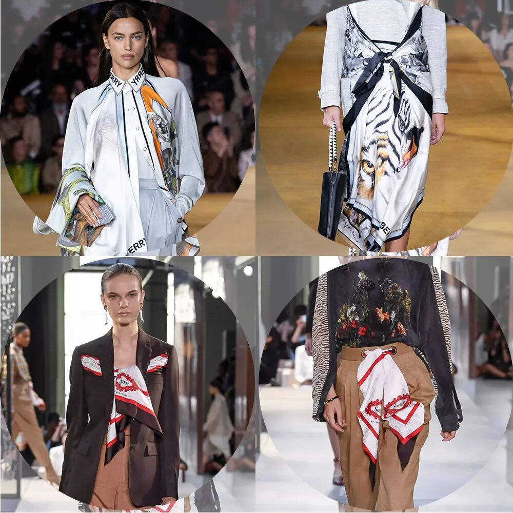 时装周作为潮流的风向标,最新的潮流时尚都在这里诞生。丝巾作为永恒的经典每年雷打不动的出现在秀场上,而且绑法也五花八门。