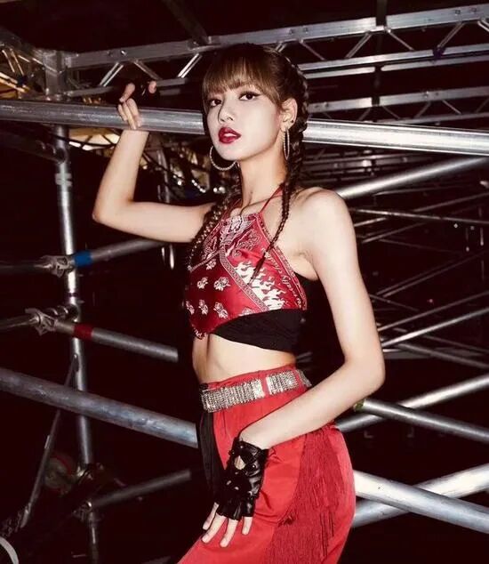 Blalckpink舞台表演中,Lisa曾经把丝巾当crop top穿。