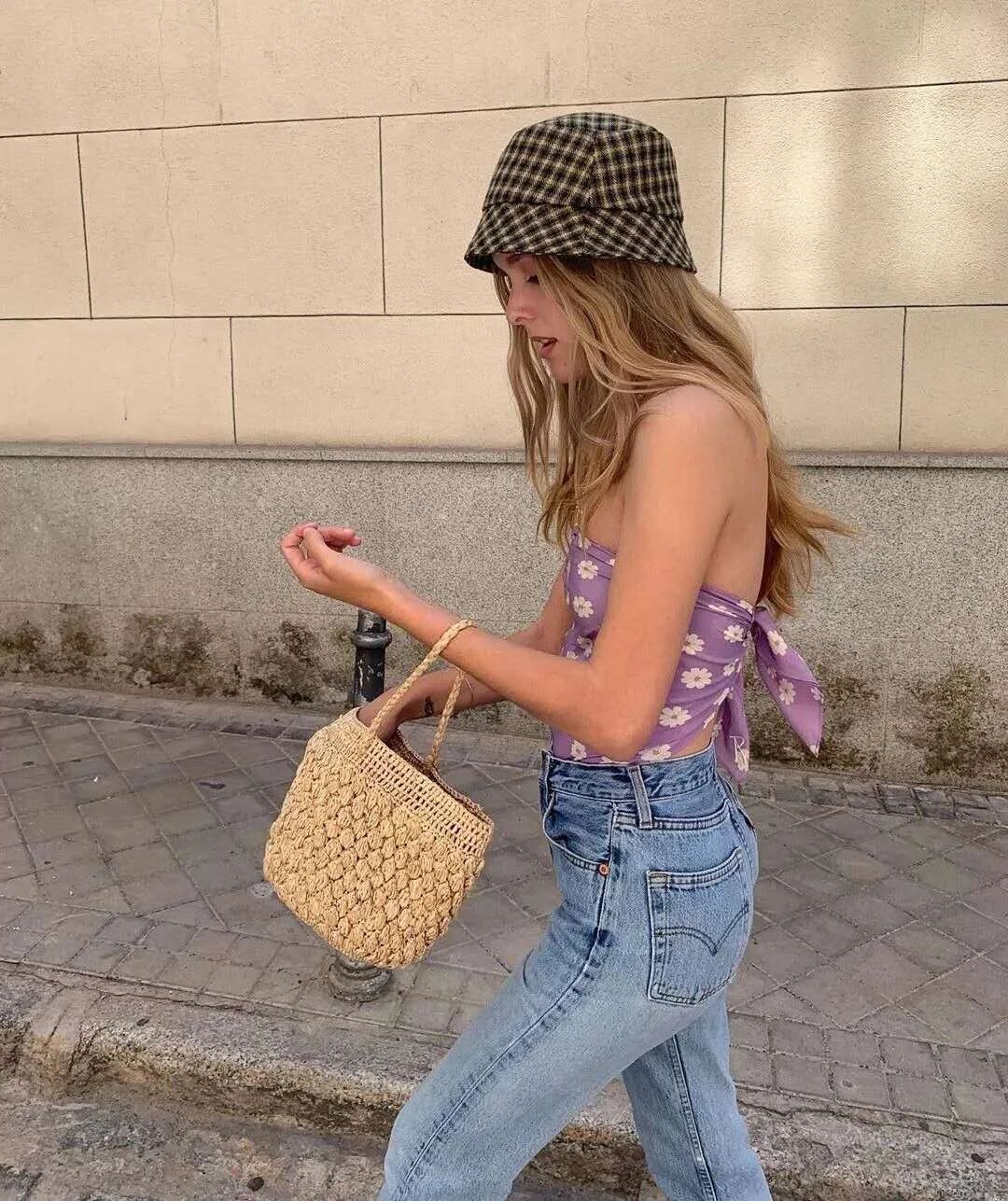 夏天草编包和丝巾最配,将丝巾随意打一个结系在包包手柄上,度假感十足,随随便便拍照都好看,还显得十分精致。