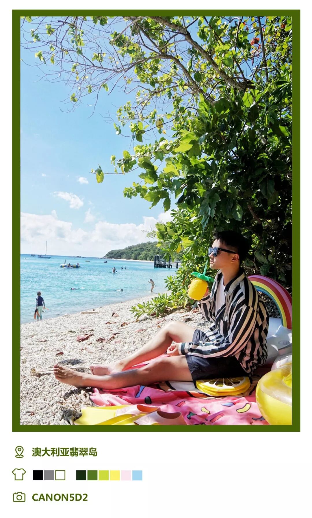 坐火车去位于昆士兰州凯恩斯市以北约27公里的热带雨林中的小镇库兰达,沿途风景像是穿梭在一个奇妙的世界。回程坐缆车可以俯瞰另一个视角的热带雨林。还可以去翡翠岛,马上开启海边度假模式,大条纹的衬衫加短裤T恤墨镜,就很舒服了,海边可以多带一些道具。