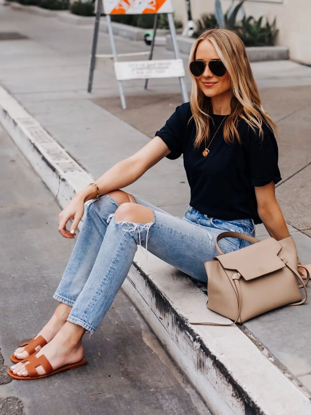 复杂色一旦你穿不好,那么你整套造型就是完全废了的。像这一套浅杏色的连衣裙穿搭,虽然颜色上很简单,但是配上一双小白高跟鞋也很有范。