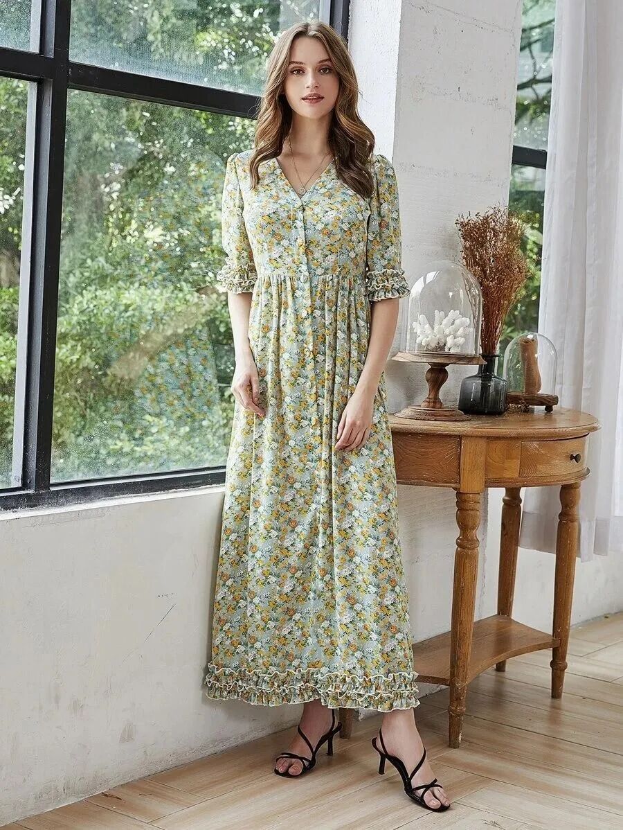 这一套碎花短袖搭配牛仔裤。清纯色的上衣看起来很减龄,也很有少女感,这样的颜色虽然不单调,但是也一点都不过度夸张。