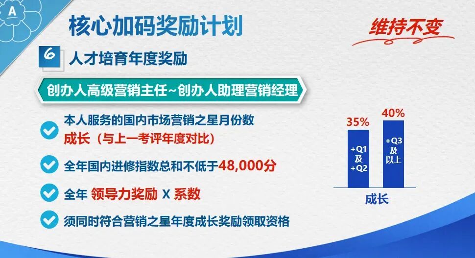 三、达Q 额外奖金补贴:互联网+安利快速倍增市场,跑马圈地,整合资源,深度发展。(最重要的是倍增,倍增才能做大)2年经理,3年高级经理,5年FC!