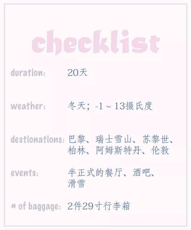 我想每次出游前,最头疼的环节应该莫属“打包”这件大事了!我出发前一周才接到通知,还是20天欧洲冬天的旅程,我的打包信号立马飙升到最紧急状态!!
