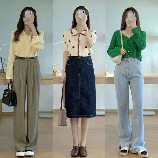 黄色上衣也可以搭配一条包臀牛仔裙,黄色和红色撞色的上衣,很衬肤色又有复古风的感觉,总体协调又耐看,很有高级复古感。