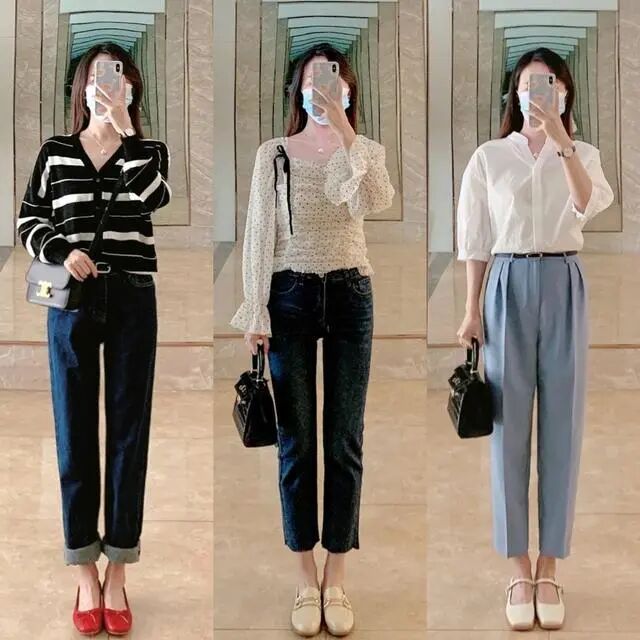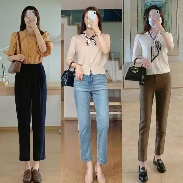 鞋子搭配一双小白鞋或帆布鞋,不仅有职场的干练还增加了一些青春的气息,而搭配一双黑色的中跟或高跟鞋,就会显得很正式。