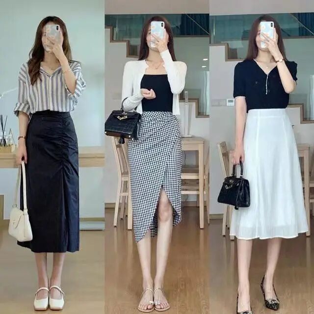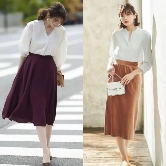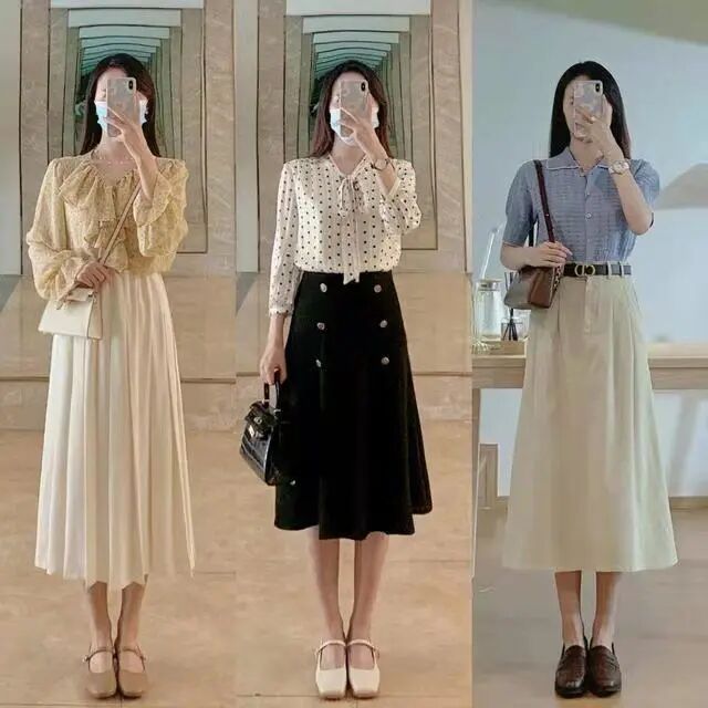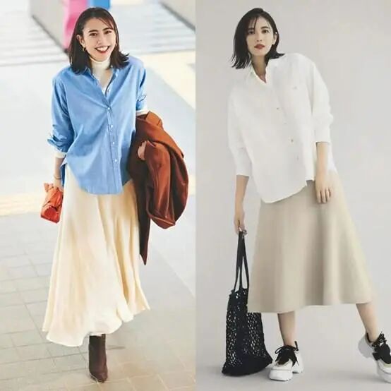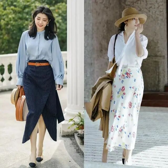 半身长裙有很强的包容性,不管是胯宽、腰粗、腿粗的女孩子都能穿,可以轻松的遮住肚肚上和腿上的赘肉。纯色的半身裙上身搭配一件简单的衬衫和玛丽珍鞋,就是一套优雅干练还清凉的夏日职场穿搭。