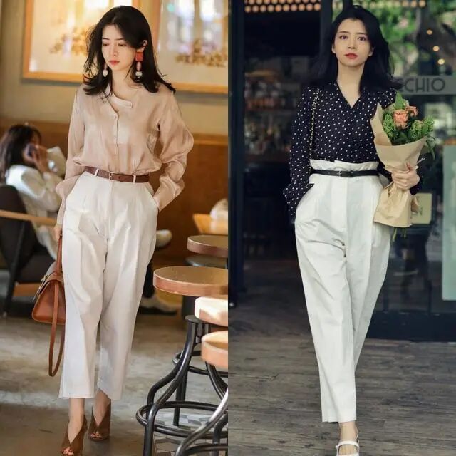 由于职场环境的特殊性,所以服饰的颜色不能太过鲜艳。一直以来,职场女性经常使用的配色就是黑白搭配,这是最经典的一种配色。质朴的纯色基本款衬衫,拥有其他单品不可比拟的正式感,搭配一条黑色的阔腿裤。裤装会比裙装更加正式,并且长款阔腿裤会让人显得非常高挑,而且阔腿裤的设计也非常的修饰身材,让人的身材显得非常纤细。