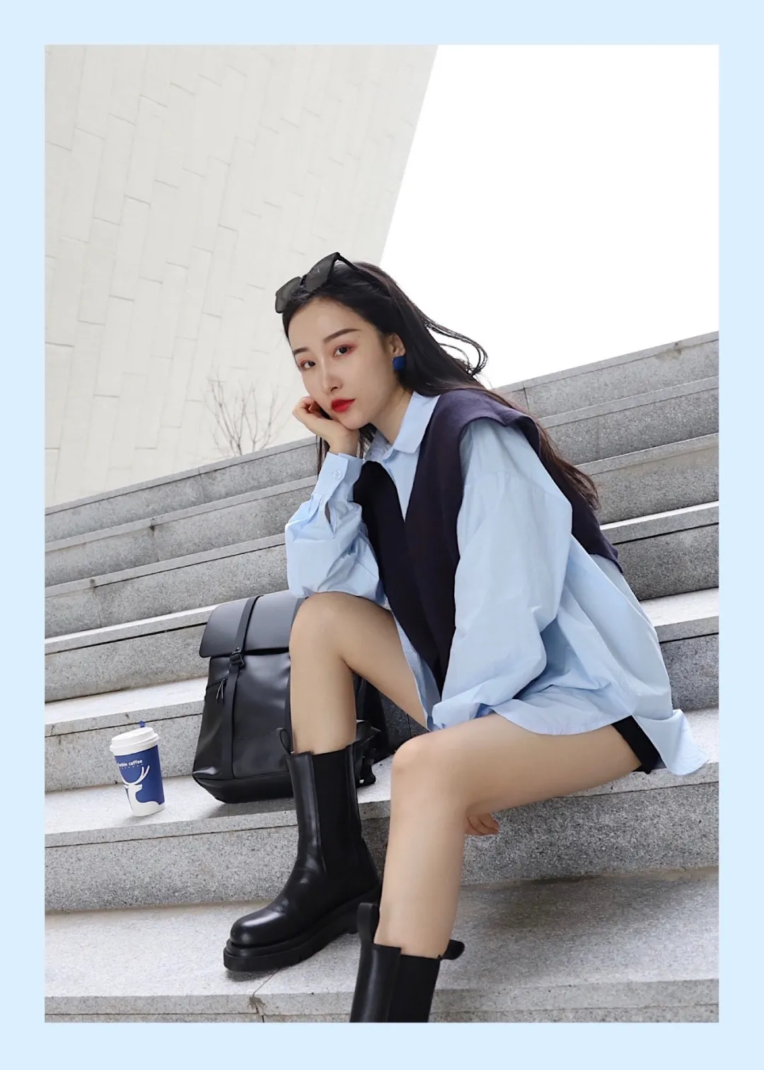 春秋季节最实穿榜单第一名必须是衬衫!当然,不是正经职场feel的,休闲感十足的BF风衬衫,浅蓝色让它看起来清新气质。