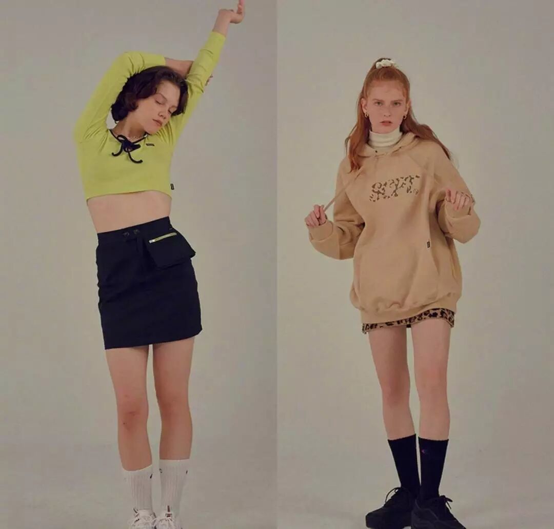 穿短款修身针织衫、宽松卫衣、短款卫衣,搭配高腰短裙或短裤,显高效果立竿见影。