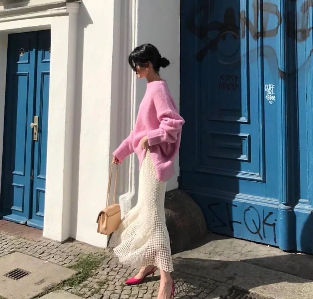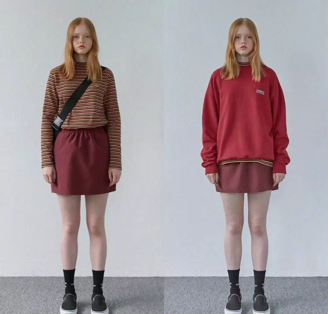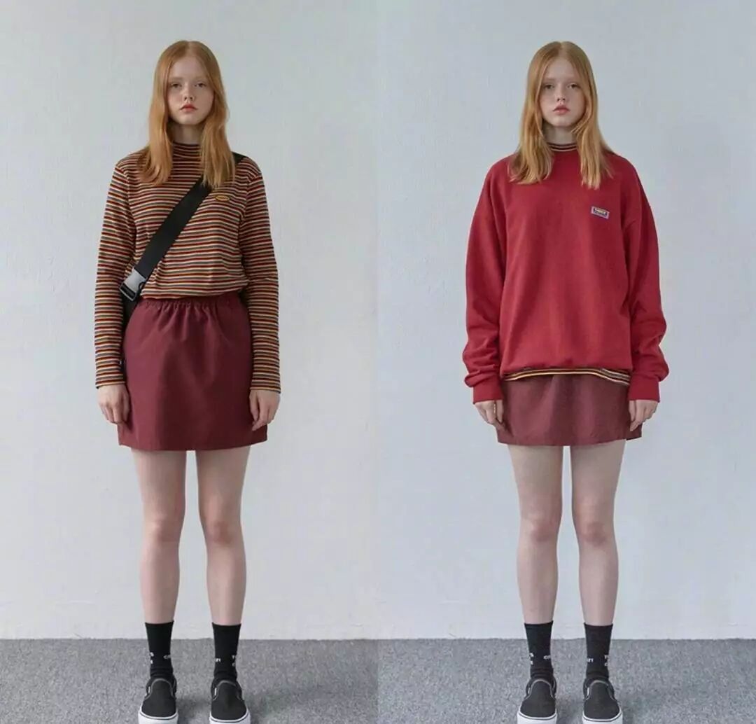 宽松上衣+短裙,短款紧身上衣+短裙都是显腿长的利器。