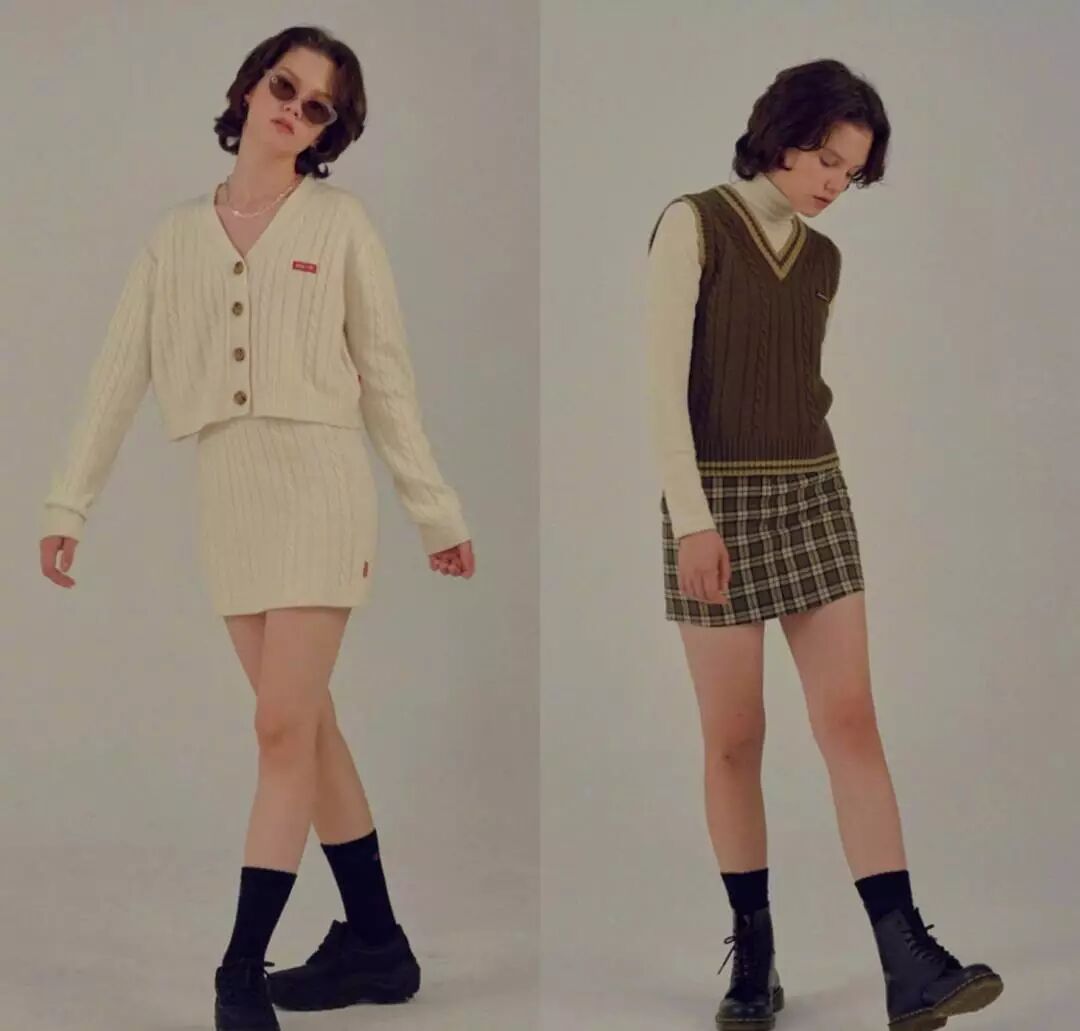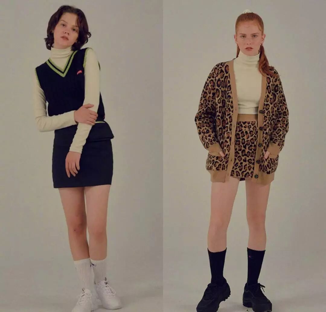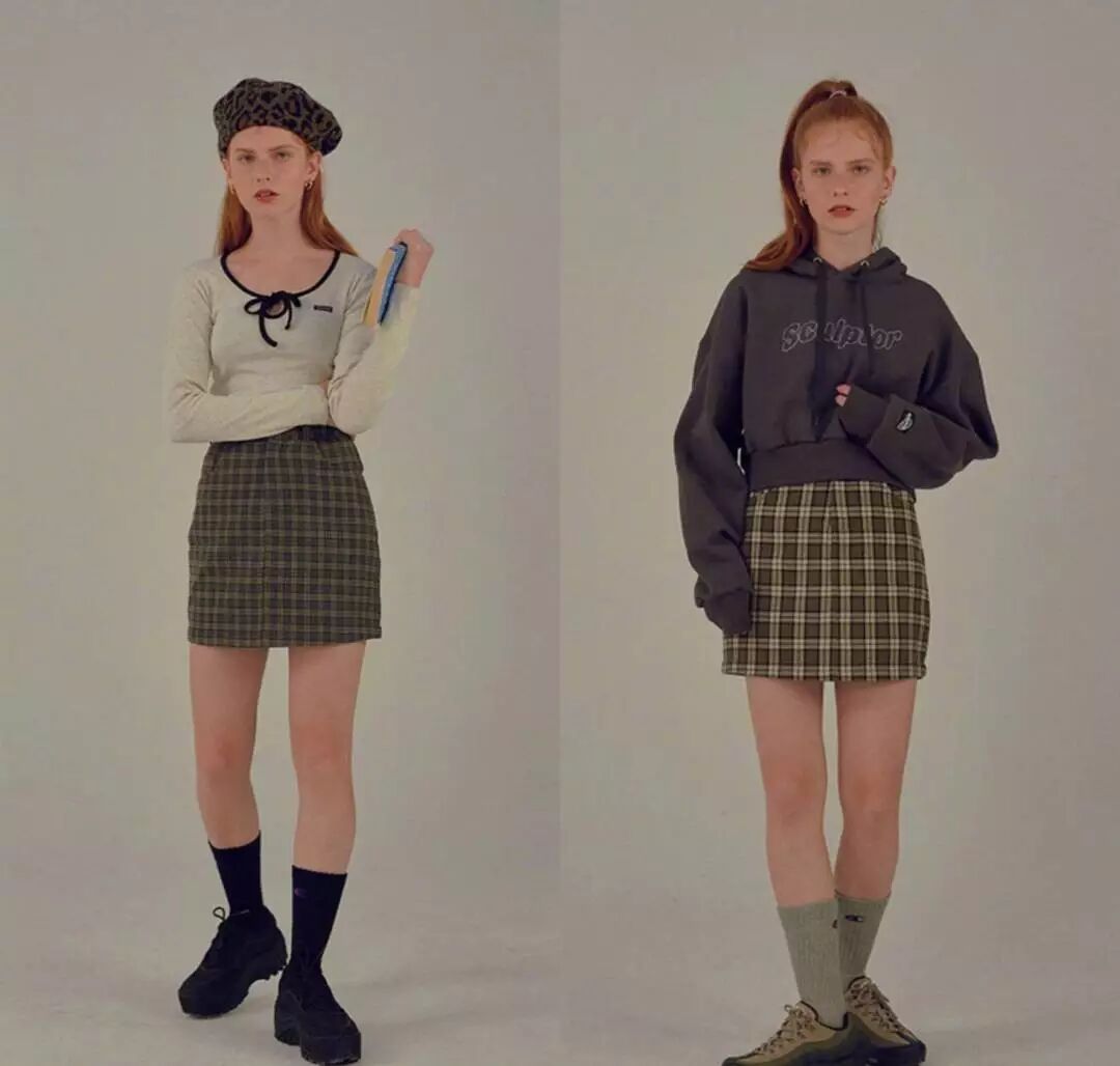 短裙元素选择方面,秋冬热门的豹纹以及经典的格纹都是搭配出少女风的单品的好选择。