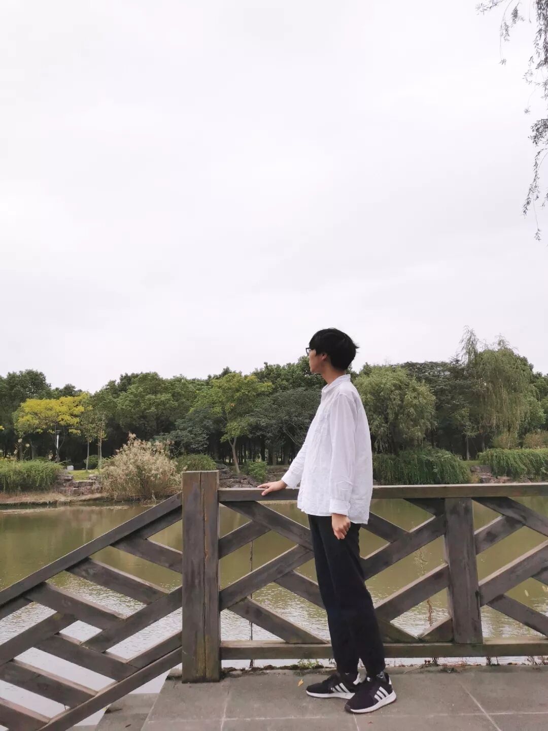 外套的白色与裤子的白边互相呼应
