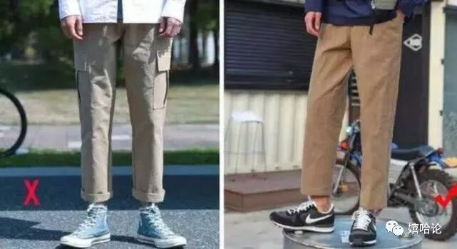 挽裤脚现在是很普遍的一个现象,小个子挽裤脚只会显得更矮,so放下你的裤脚,这样对你的腿长很友好。裤长到脚踝处是最佳的长度,完美的伸延了腿线,这样整体达到了上中下的视觉层次感,所以就会显得比较高。