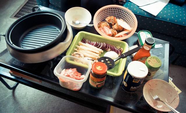 野外烧烤常用的厨具不能少野外烧烤也就是在大自然里做顿饭,吃顿饭。所以做饭吃饭的用具多多益善,省得用到时不方便。常用的野外烧烤厨具除了锅碗瓢盆,还有调味盒、各种酱料、小刀、盘子、筷子、纸巾、纸杯等。当然要是能带上气炉,烧点野菜汤喝简直太美妙了。