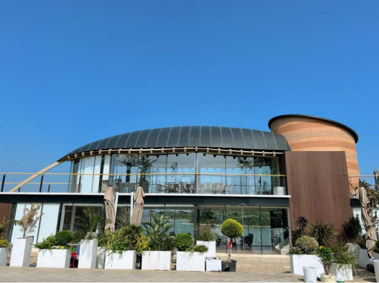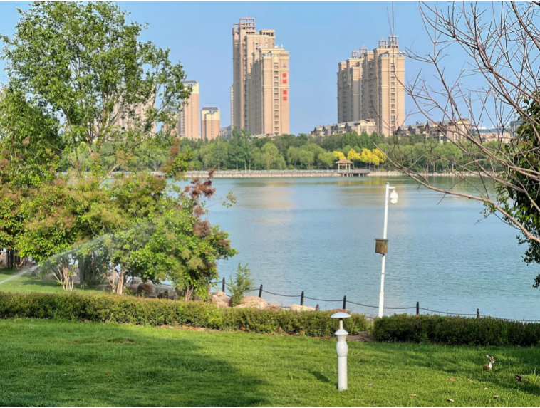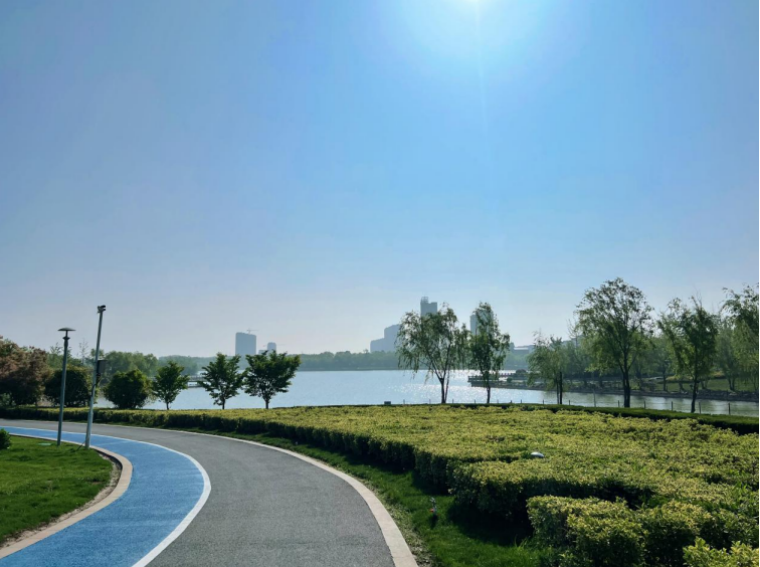 从这个路口进去,就可以看到我们的城市会客厅啦。来会客厅里喝茶、喝咖啡,一起聊聊天,也是很不错的哟。对啦!会客厅旁边也有一块草地适合露营哟!对着湖扎下帐篷,夕阳洒在湖面上,对着波光粼粼的湖面许愿吧!
