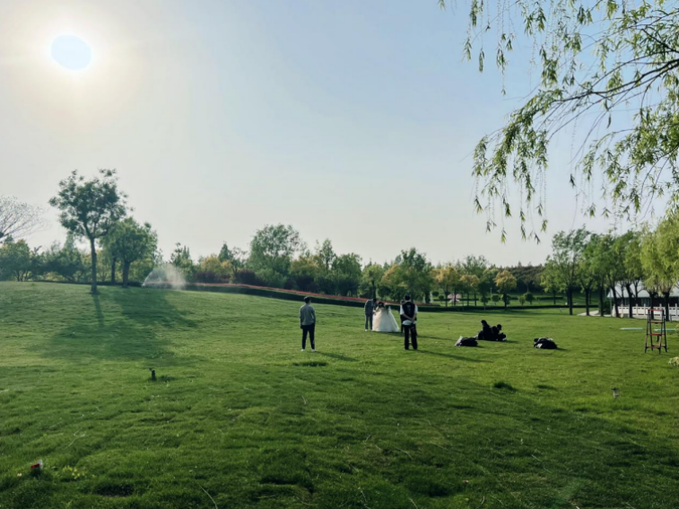 沿着这条路一直走,就会看到大片的草坪。找一处自己喜欢的风景停下,聊聊彼此的心事吧。