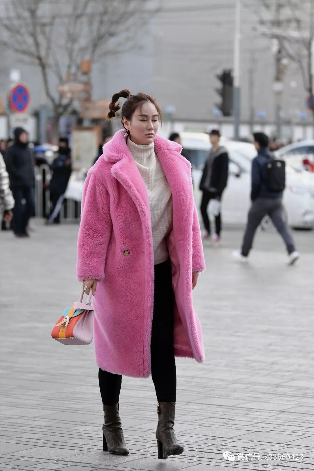 冬天也可以很有色彩,很多人喜欢看别人穿着色彩艳丽的服装,当自己选搭衣服的适合,却还是黑白色的这一类素色,觉得自己驾驭不了,这款粉色的大衣,抓绒的款式,蓬松的感觉让更显保暖,米白色真是高领毛衣搭配黑色修身裤,一双粗跟短靴,更是提升气质。