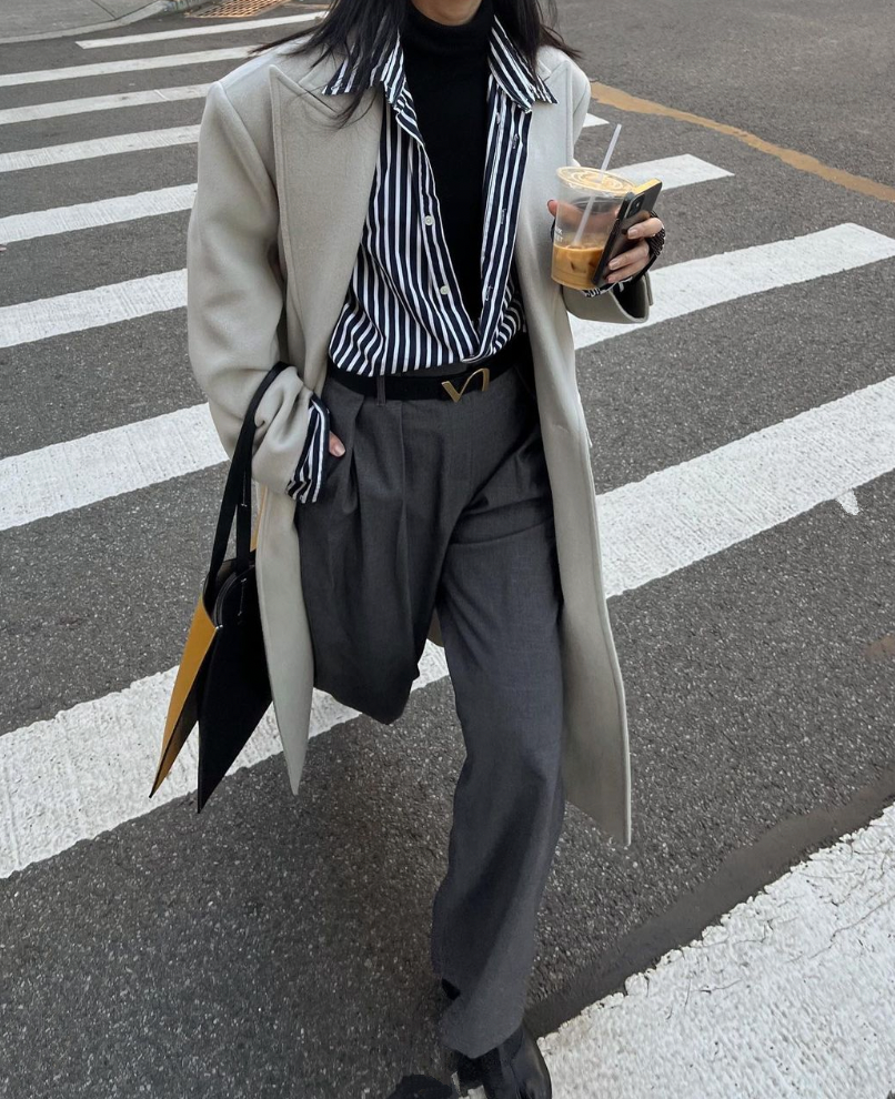 再给大家分享一套风衣穿搭,去年的时候,我是穿黑裤子,就还行吧。