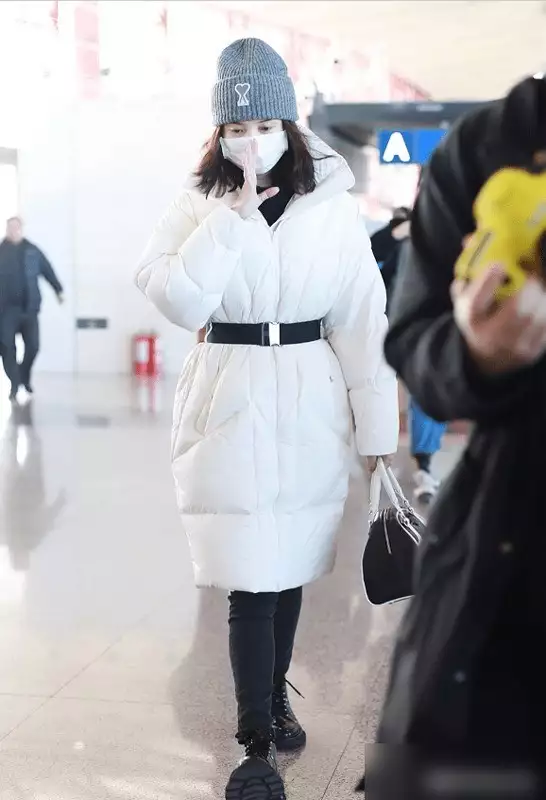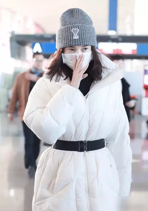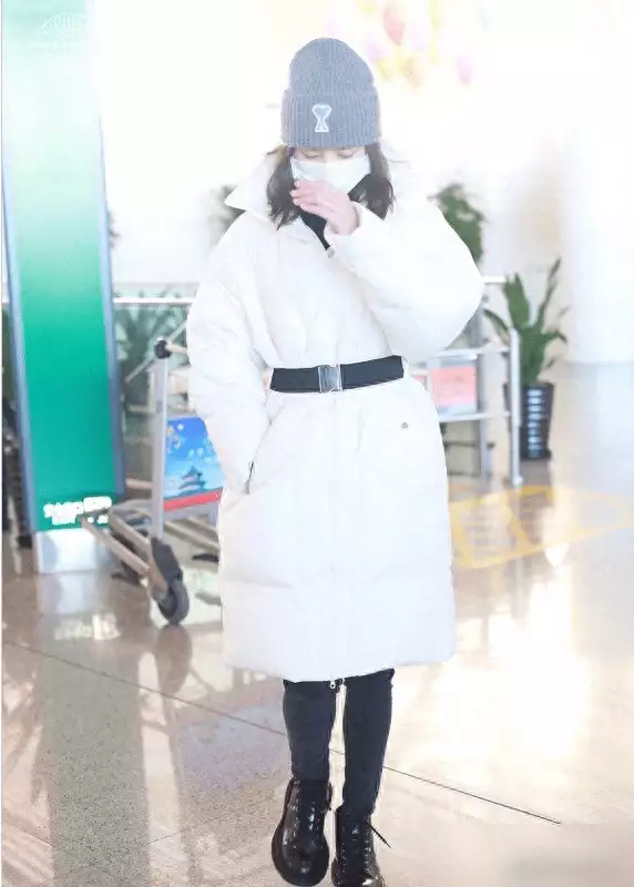 ▼白色收腰羽绒服,兼顾显白与风格