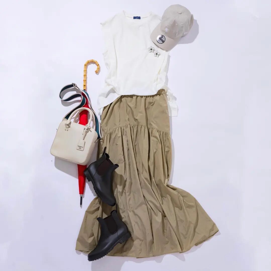 editorkao的日常穿搭拼图也是我一直喜欢的,上周用到了卡其色长裙,也给我们小店的半身裙一个很好的灵感,用白色无袖T恤搭配卡其半裙安全又得体,配饰上看到了红色的雨伞,点睛之笔了。